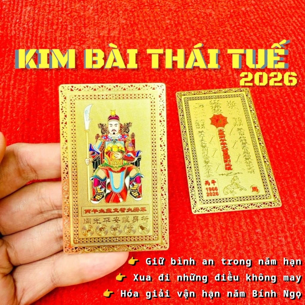 Kim Bài Thái Tuế 2026 là mặt hàng có nhu cầu tăng mạnh vào đầu năm và kéo dài suốt năm đối với những người quan tâm đến việc hóa giải vận hạn năm Bính Ngọ.